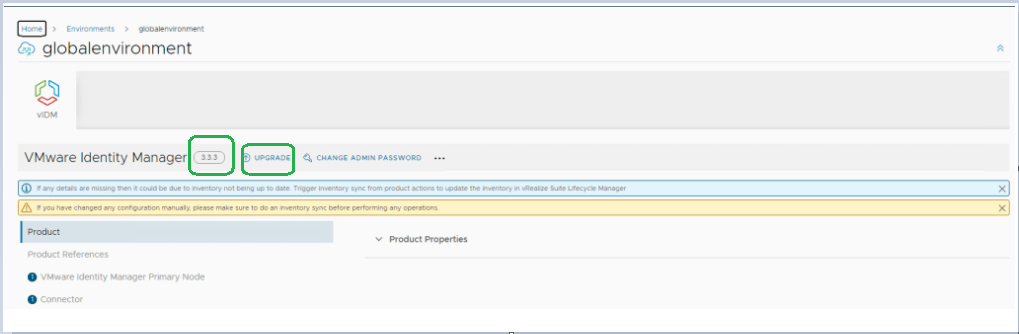 Once It is done Go to Global environment and click on view details . You would see the upgrade the button for VIDM 3.3.3.