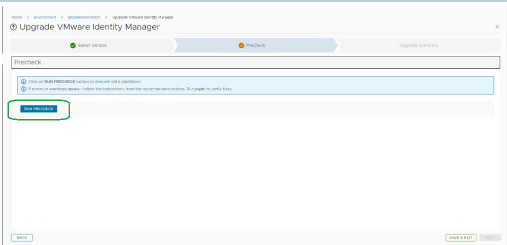 Once Precheck is completed , You would see like below , These are the health check performed.