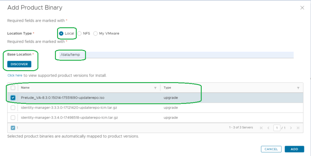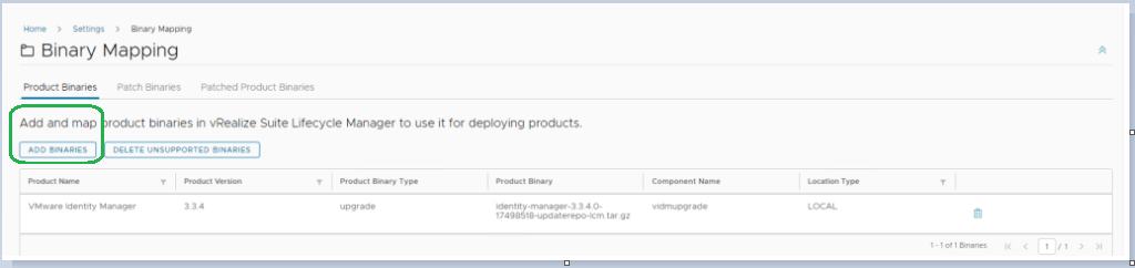Now files are transferred , lets map the binary in vRLCM 8.3, To do that click on Binary Mapping and Add Binaries