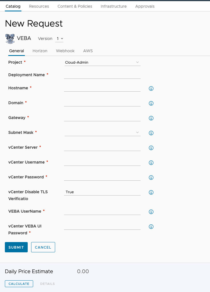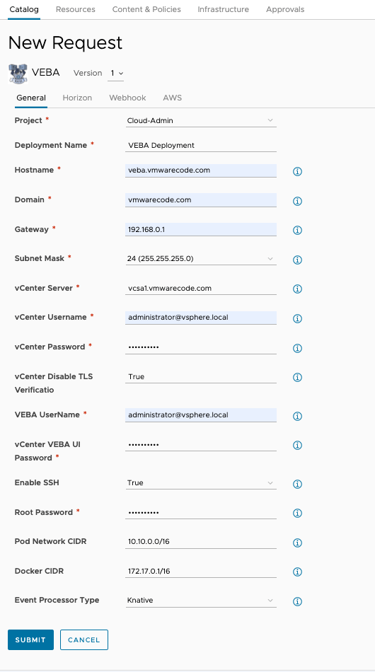 As a new User to VEBA , First step was to install and Instead of going to deploy into multiple places , I decided to create a VRA Cloud Catalog Item which can use used in future with couple of clicks.