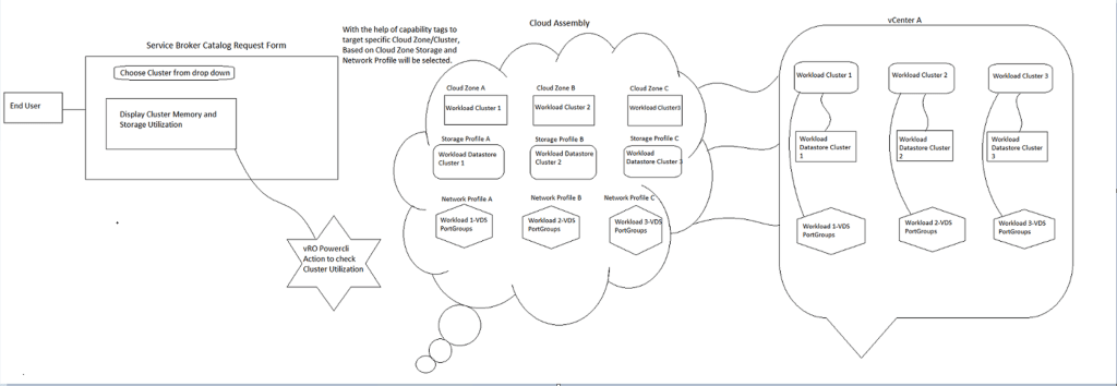 As VRA provides self service portal which comes via Service Broker. End User wanted to have catalog item which shows CPU , Memory and Storage consumption of clusters in form before they submit the vm provisioning request.