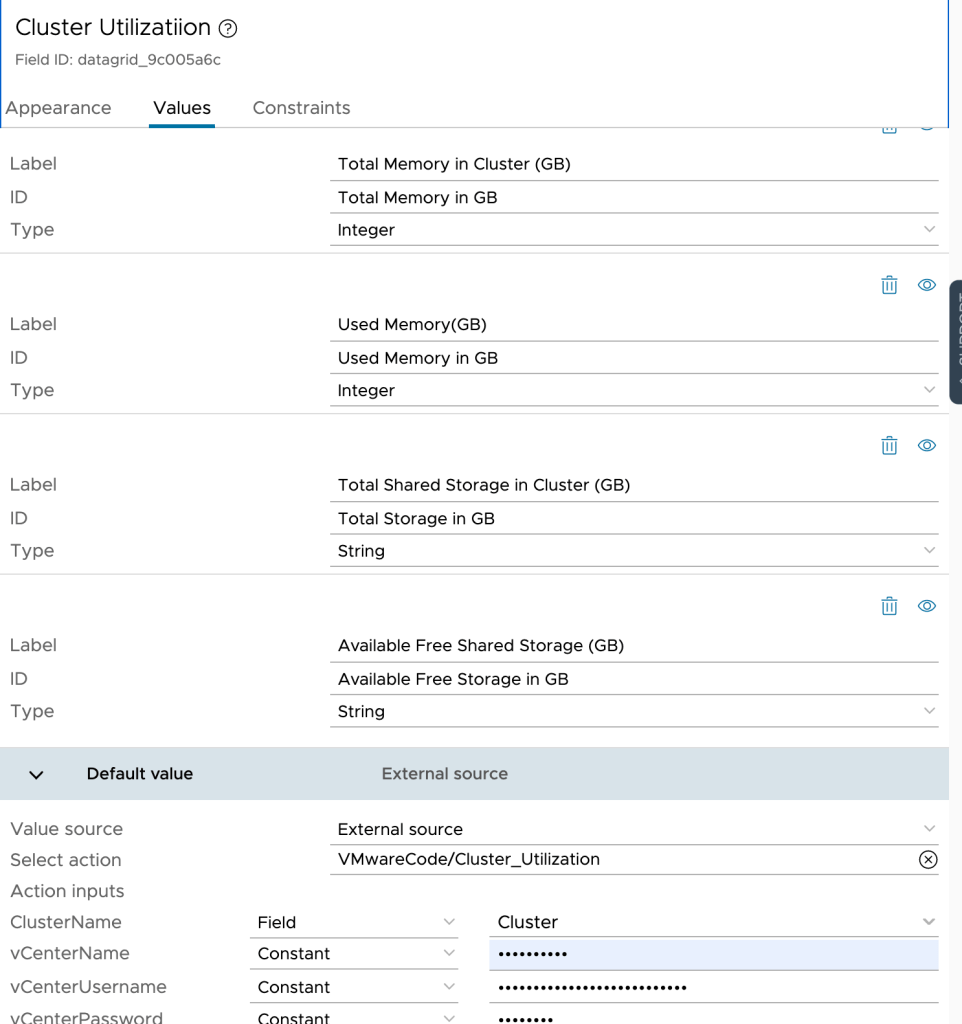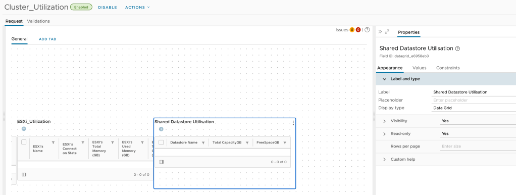 Now Cluster Utilisation datagrid which will be using vro action .