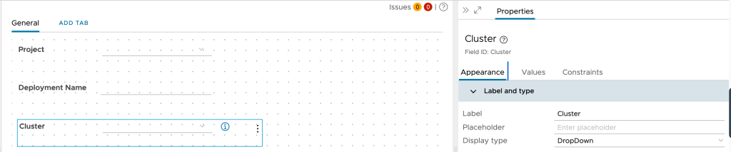 This is how the custom form look like , Project , Deployment Name and Cluster will come by default as per Our Cloud Template.