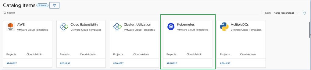 Aria Automation(vRA Cloud): Request Kubernetes cluster using self service catalog item