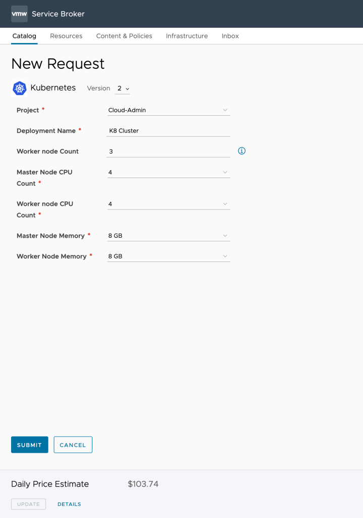 If you have followed the steps till now , we are ready to provision our Kubernetes Cluster using catalog item .